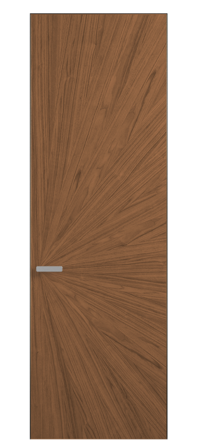 Полотно Rift в скрытом алюминиевом коробе становится полноценным элементом декора. В коллекции представлено 9 моделей дверей в высоте до 3 метров. Рисунок раскладки шпона варьируется от простого до сложного. «Рубашка» для каждого полотна подбирается вручную по цвету, текстуре и фактуре.
